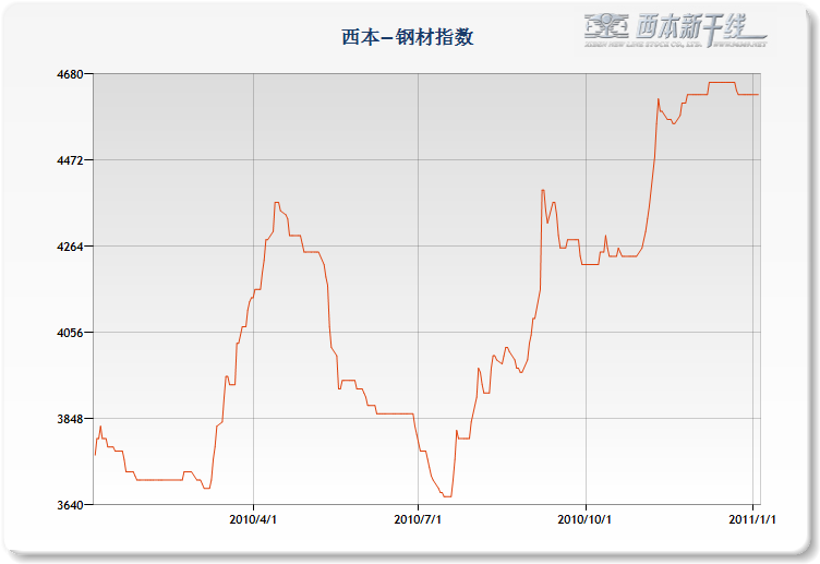 综合来看,我们对2011年宏观经济增长并不乐观,2011年钢材需求也因此存在极大的不确定性。同时,国内钢铁产能总体过剩,以及国际需求仍较为疲软,将制约钢材价格上涨的空间。加之钢材期货日趋成熟,钢材金融属性增强,价格炒作推高后的剧烈波动将在所难免。预计2011年国内钢材市场总体将围绕行业平均成本震荡运行,价格总体水平将高于2010年。西本新干线钢材指数全年将在4000-4900元/吨区间波动运行。