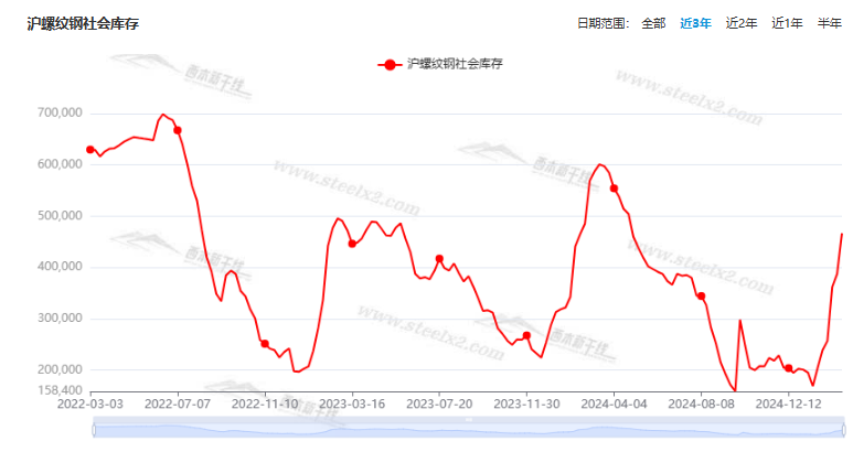 据中钢协数据,2025年2月中旬,重点统计钢铁企业共生产粗钢2151万吨,平均日产215.1万吨,日产环比增长0.8%;生铁1908万吨,平均日产190.8万吨,日产环比下降2.7%;钢材2037万吨,平均日产203.7万吨,日产环比增长4.2%。2月中旬,重点统计钢铁企业钢材库存量1673万吨,环比上一旬增加52万吨,增长3.2%;比年初增加436万吨,增长35.2%;比上月同旬增加380万吨,增长29.4%;比去年同旬减少225万吨,下降11.9%,比前年同旬减少280万吨,下降14.3%。
