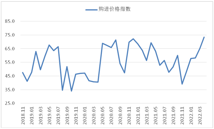 从中物联钢铁物流专业委员会调查、发布的钢铁行业pmi来看,2022年4月份为40.5%,环比下降3.8个百分点,连续3个月下降,钢铁行业下行压力加大。从分项指数变化来看,4月份,疫情对钢铁行业的影响有所延续,涉及到产业链的各个环节,需求整体下滑,钢厂生产收紧,原材料价格上涨,钢材价格震荡下行。预计5月份,随着疫情防控措施持续压实,疫情对钢铁产业链影响将逐步减弱,前期被抑制的市场需求或加快释放,钢厂生产趋于回升,成本压力有望缓解,钢材价格稳定回升。