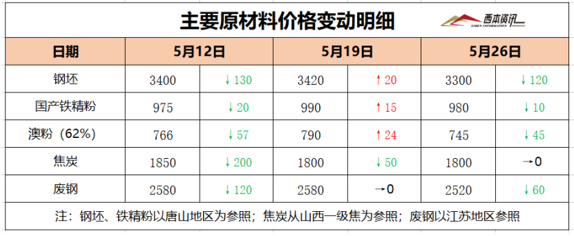 · 2023-05-125月12日西本钢铁原料价格走势预警报告