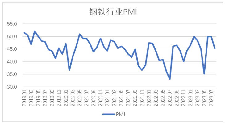 2023年8月钢铁pmi显示:淡季特征有所显现 供需两端均有下降