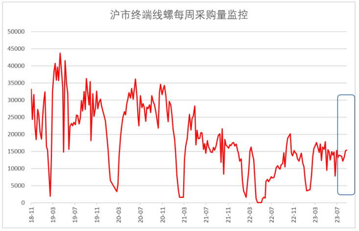 图3 2018年以来沪市终端线螺每周采购量监控数据变化情况