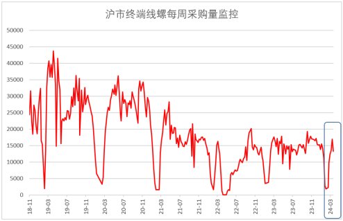 钢铁市场需求复苏缓慢。3月份,春节假期结束后,下游整体施工表现不佳,市场需求恢复缓慢,成交也缺乏亮眼表现,商家多持不乐观态度。一个重要原因是基建、地产等方面预期较差,相关钢材需求偏弱。3月份,新订单指数为44.4%,虽较上月上升3个百分点,仍处于45%以下的低位。终端方面,据上海卓钢链了解,3月份复工后板材市场表现尚可,但建材下游需求迟迟难以释放,终端采购也无限延后。从监测的沪市终端线螺采购数据来看,3月份上海终端采购量虽环比回升,但仅和1月份水平相当,处于较低水平。
