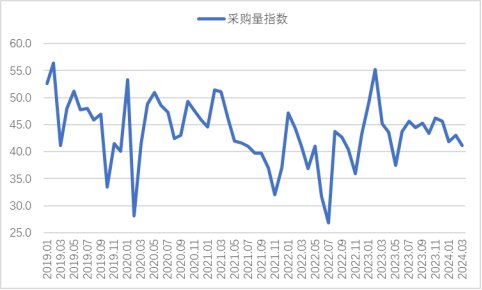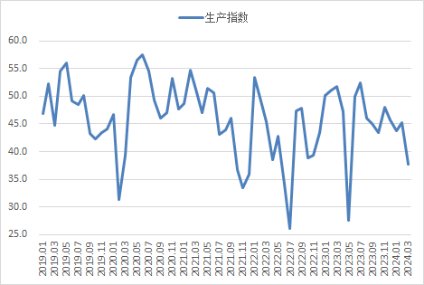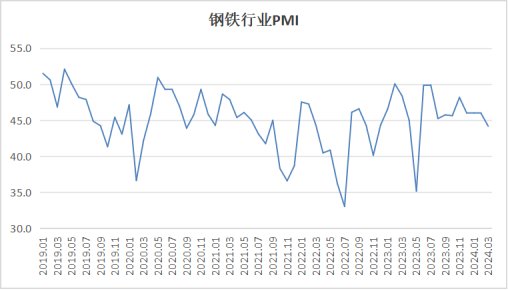 从中物联钢铁物流专业委员会调查、发布的钢铁行业pmi来看,2024年3月份为44.2%,环比下降1.8个百分点,显示钢铁行业继续弱势运行。分项指数变化显示,春节假期结束后,钢铁行业市场需求复苏缓慢,生产端有所下滑,带动原材料采购下降,原材料价格整体下降,钢材价格持续下行。预计4月份,钢材市场需求弱势恢复,钢厂生产或有一定回升,原材料和钢材价格震荡偏弱运行。