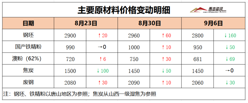 9月6日西本钢材价格指数走势预警报告