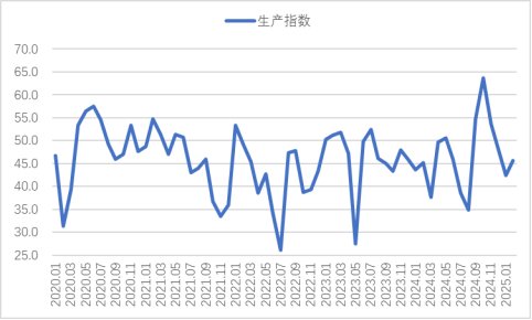 从中物联钢铁物流专业委员会调查、发布的钢铁行业 pmi 来看,2025年2月份为45.1%,指数虽仍在收缩区间,但环比上升1.8个百分点,显示钢铁行业运行缓中有所趋稳。分项指数变化显示,季节性因素影响仍在持续,钢材市场需求有待继续恢复,钢厂生产趋稳运行,原材料价格继续下行,钢材价格震荡偏弱。预计3月份,钢市需求温和回升,钢厂生产稳中趋增,原材料和钢材价格均低位回升。